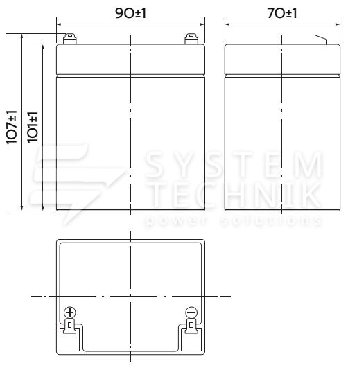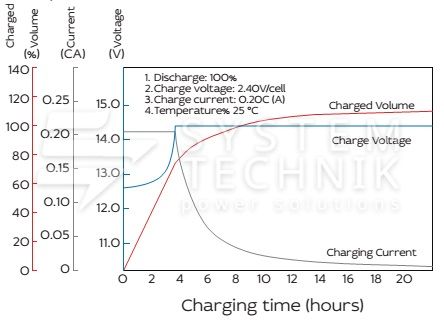 - Срок хранения без подзаряда: 6 мес. при 25°C;