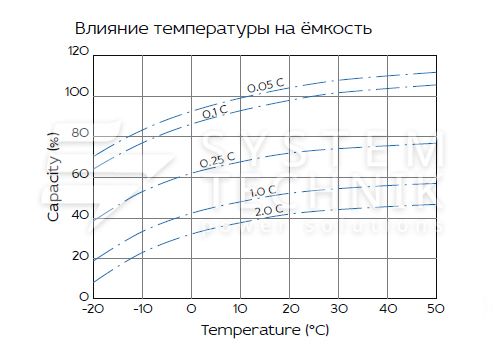 - Срок хранения без подзаряда: 6 мес. при 25°C;