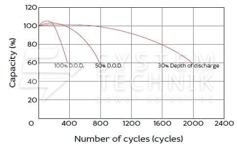 - Срок хранения без подзаряда: 6 мес. при 25°C;