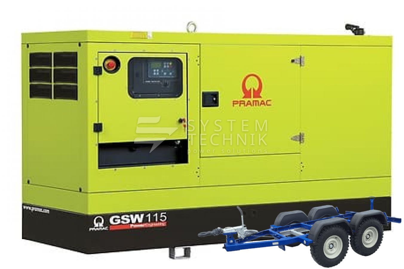 - Дизельный генератор Pramac GSW 115 P 400V В кожухе на прицепе