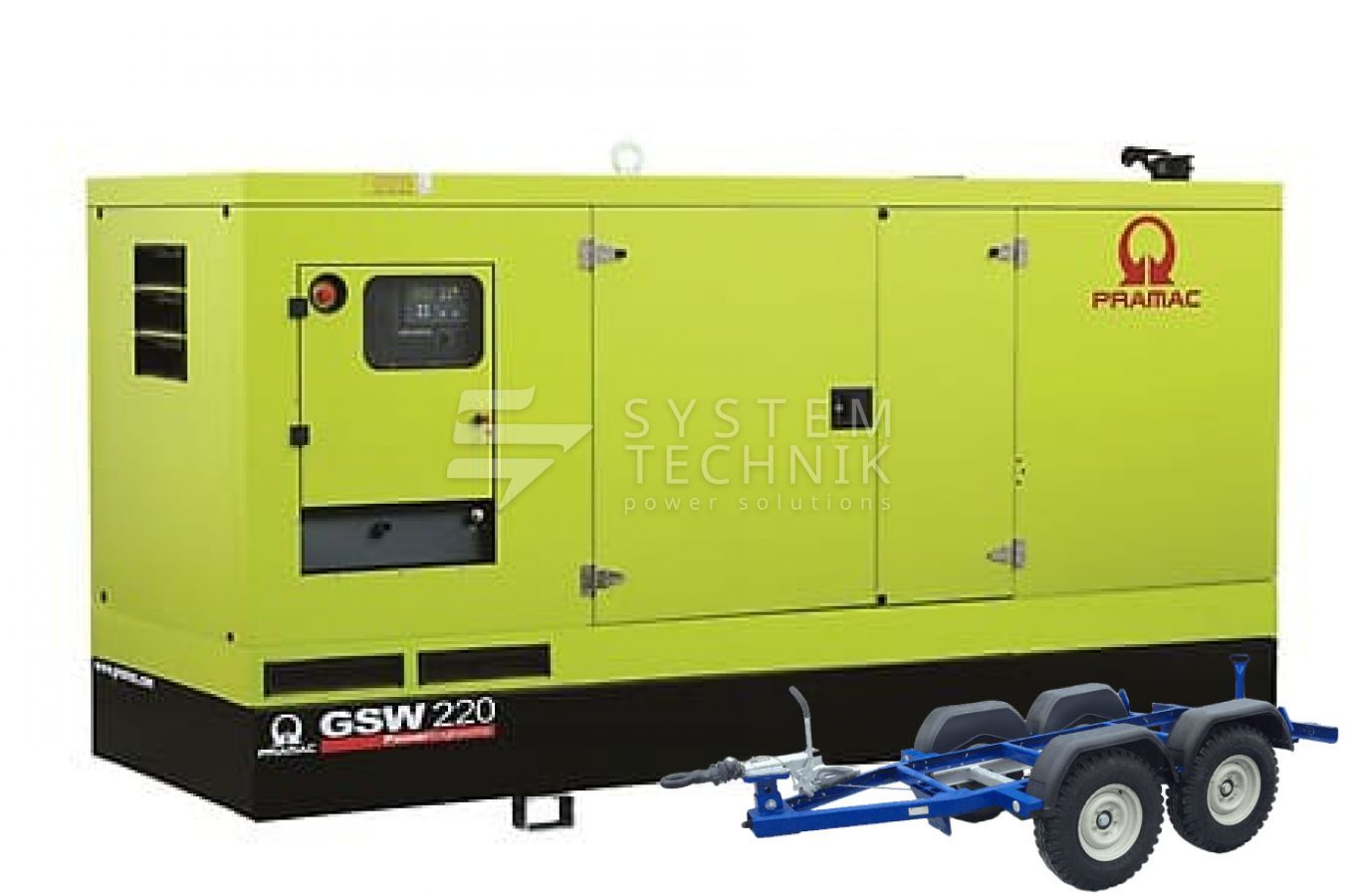 - Дизельный генератор Pramac GSW 220 V 380V В кожухе на прицепе
