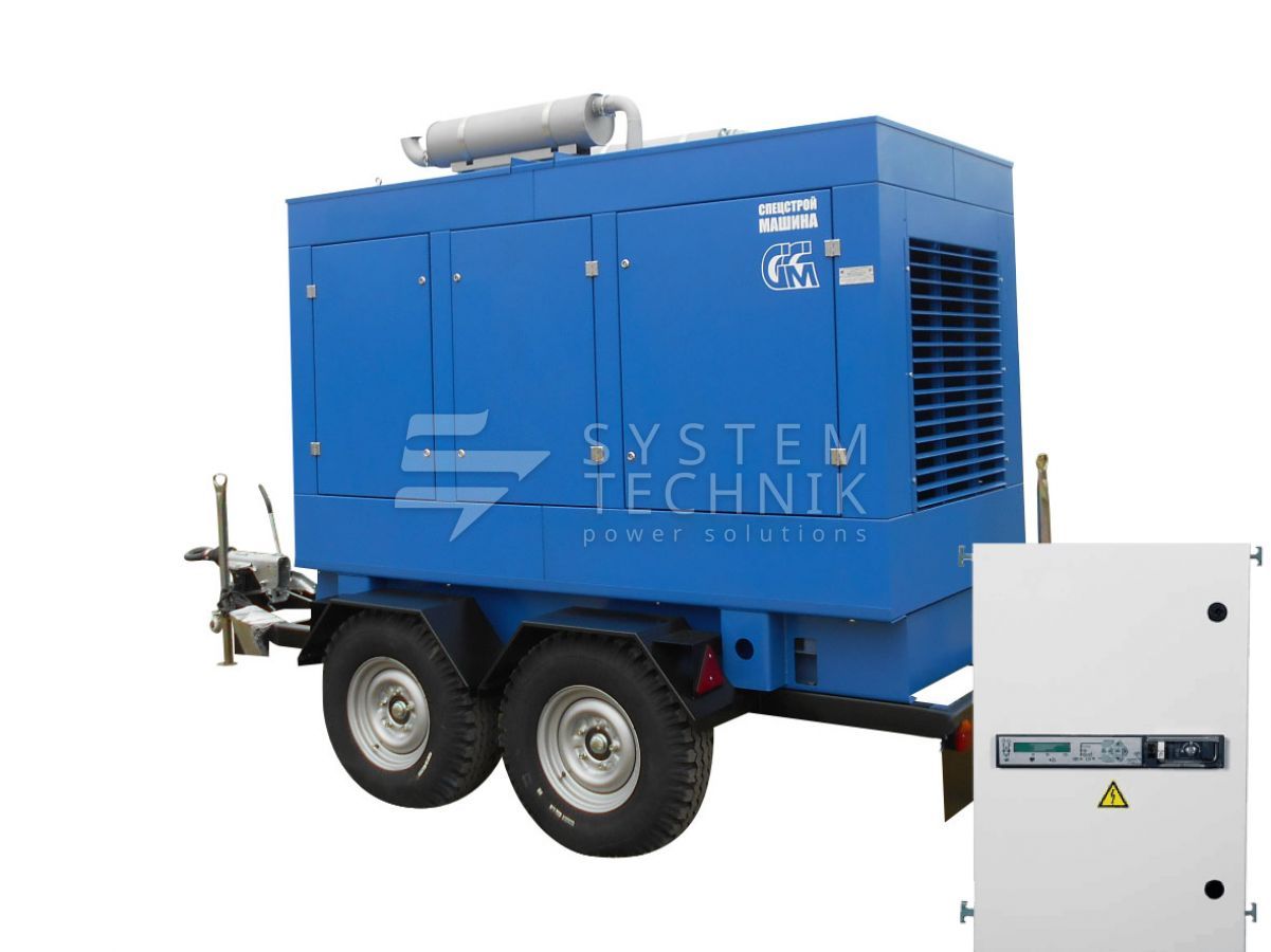- ССМ ЭД-315-Т400-2РПМ2 в погодозащитном кожухе на шасси с АВР на прицепе